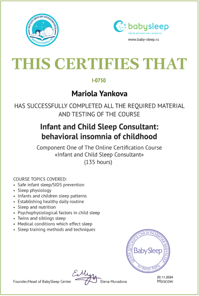 “Yesterday baby slept from 8pm to 5am and I am reborn. Thank you so much!” - Mum of a 6-month old